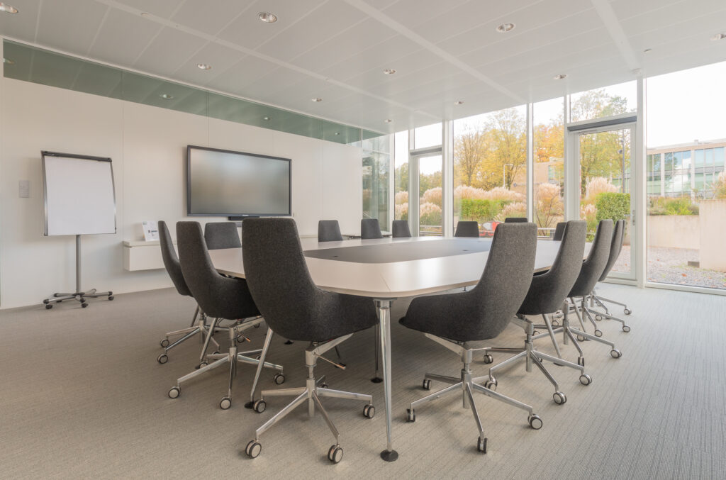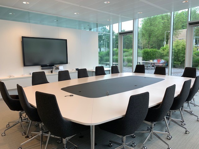 In deze ruim opgezette vergaderzaal kun je overleggen met 16 personen. De Yealink Video Conferencing geschikt voor Microsoft biedt de mogelijkheid om collega’s online bij de vergadering te betrekken, het Smart Glass biedt Privacy naar behoefte. Deze ruimte omgeven door groen zorgt voor een inspirerende omgeving om de volgende stappen te bespreken!